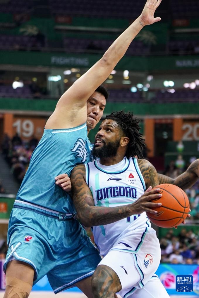 3月14日,青岛国信水产队球员鲍威尔(右)在比赛中突破。新华社记者 李博 摄