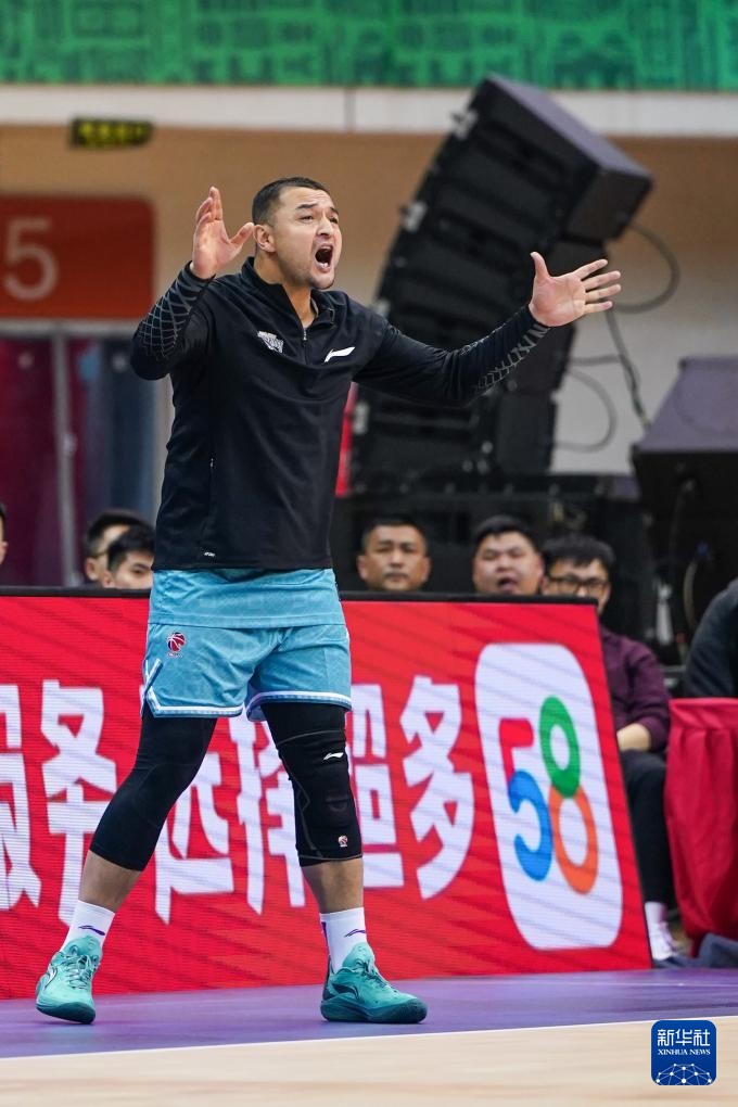 3月14日,南京头排苏酒队球员兼主教练西热力江在场边指挥。新华社记者 李博 摄