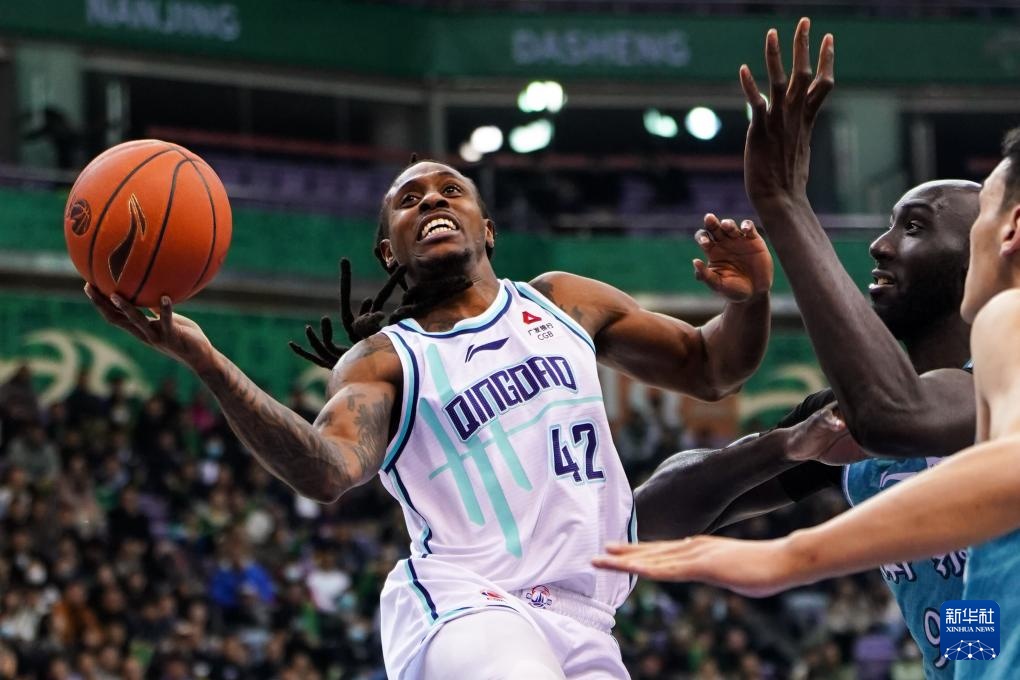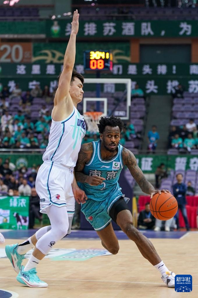 3月14日,南京头排苏酒队球员布莱克尼(右)在比赛中突破。新华社记者 李博 摄