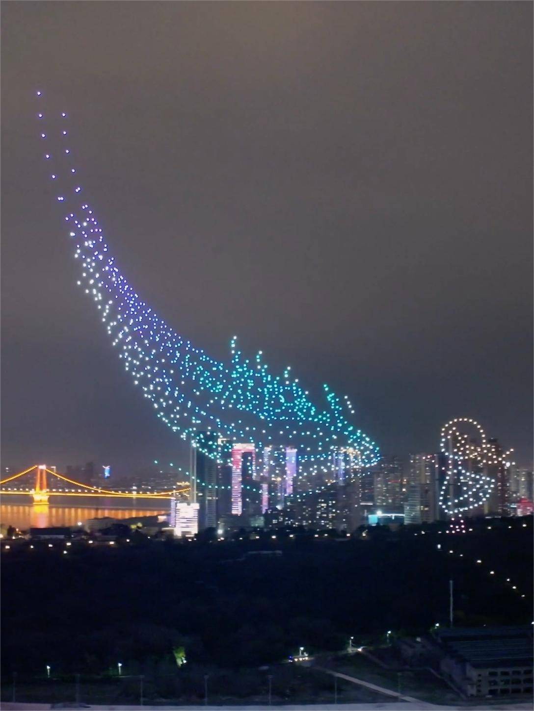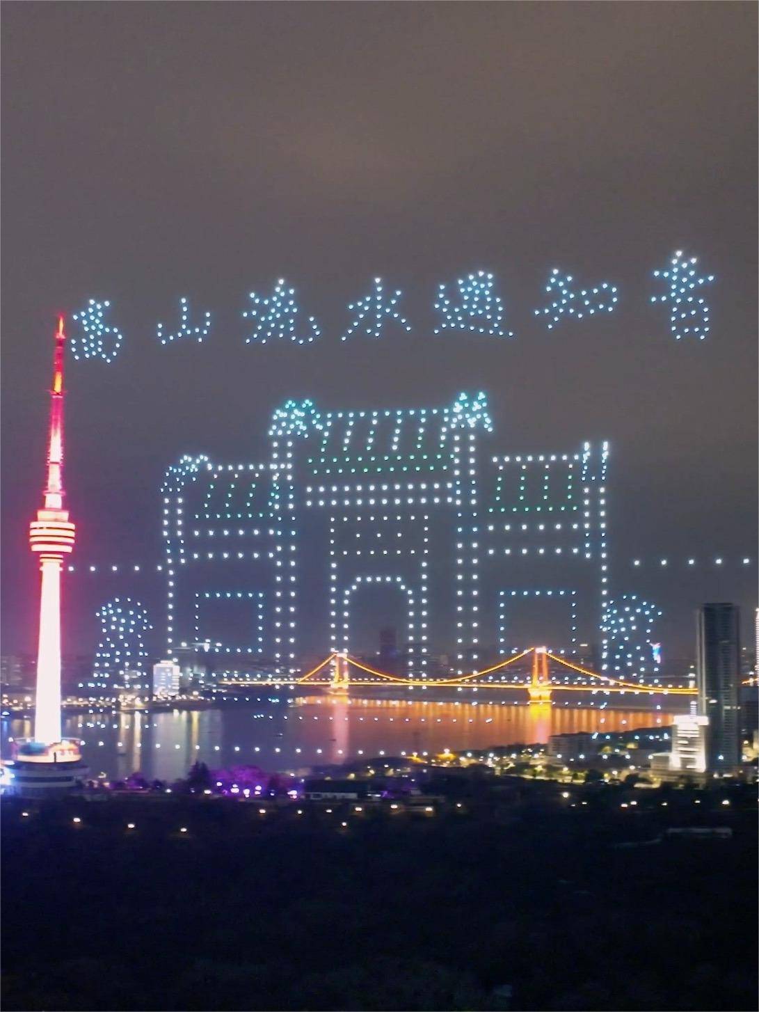 3月13日晚,武汉龟山电视塔旁,千架无人机表演点亮汉阳。或化身鲸鱼遨游夜空,或变身飞龙绕塔而上,由长江千机(武汉)文旅科技有限公司(简称“长江千机”)带来的无人机表演,尽展千古知音城的别样魅力。