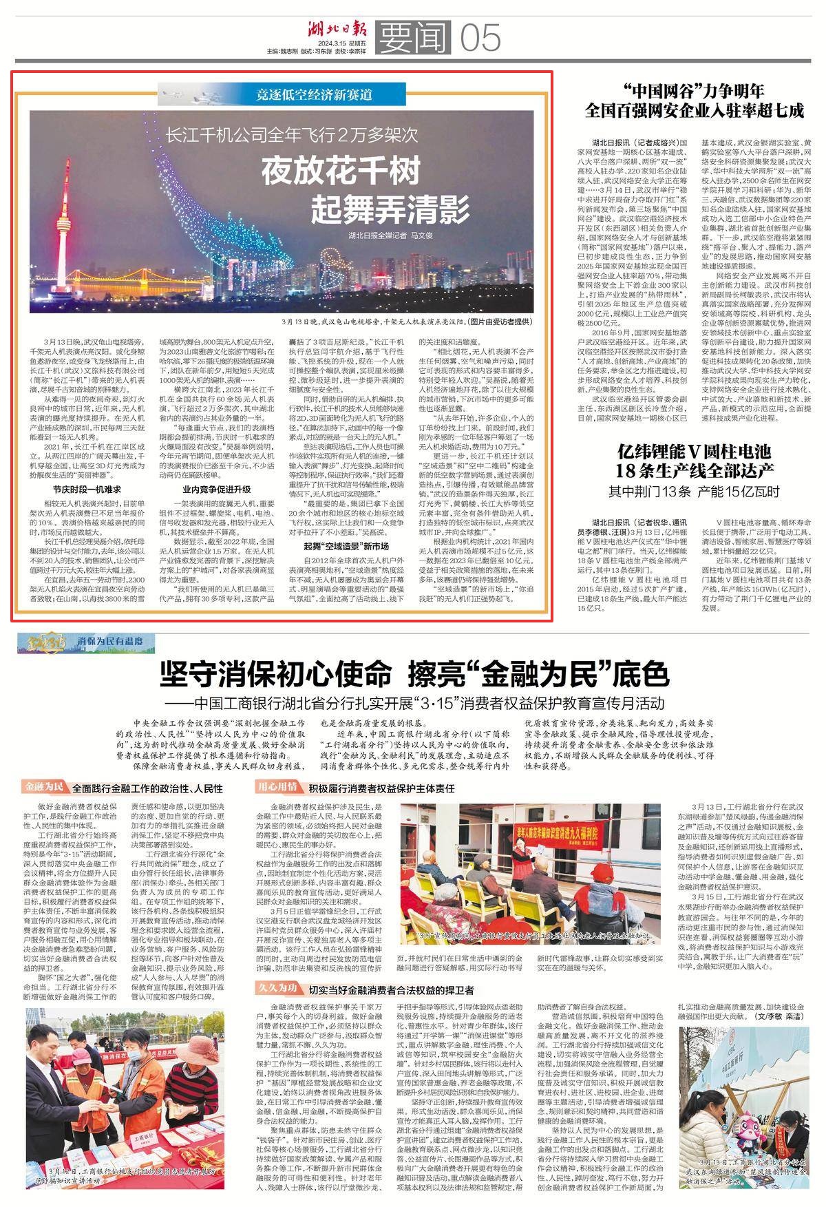 横跨大江南北,2023年长江千机在全国共执行60余场无人机表演,飞行超过2万多架次,其中湖北省内的表演约占其业务量的一半。