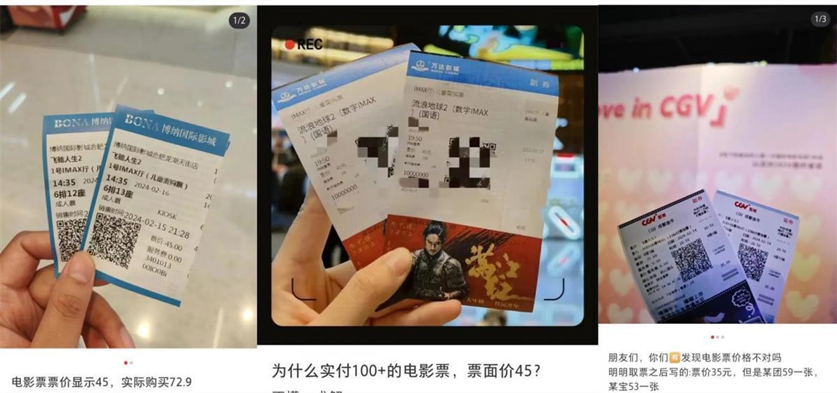 不少网友在社交平台上晒出电影票“差价”