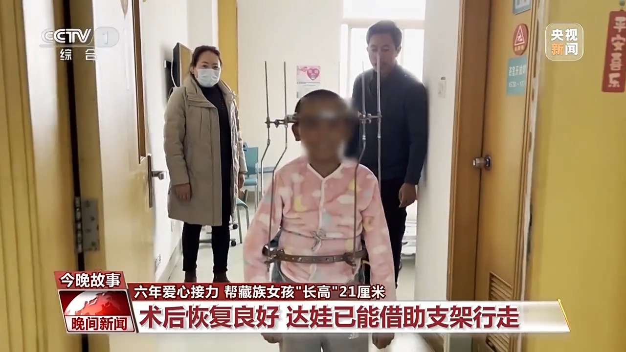 在身体条件评估合格后,今年2月6日,达娃先是接受了骨牵引手术,随后又在3月7日进行了脊柱侧弯矫正手术。整整6个小时的矫正手术,要在本就发育不良,瘦小的身体上,将错位和畸形的关节打断再进行矫形,稍有不慎,达娃就要面对瘫痪的风险,这对于孩子和医生来说都是严峻的考验。很幸运,达娃的手术非常成功。据医生介绍,伴随着康复训练,她走路和体态都可以保持平衡,不会对生活造成影响。