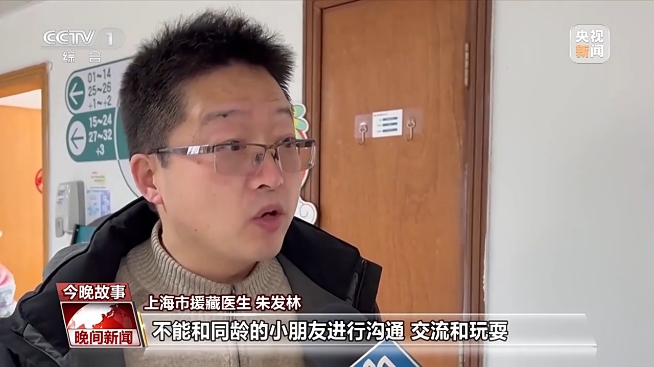 上海市援藏医生 朱发林:当时发现达娃的时候,身高与年龄相对照远远不达标,体重也非常低。不能和同龄的小朋友进行沟通、交流和玩耍,生活极其不自信。