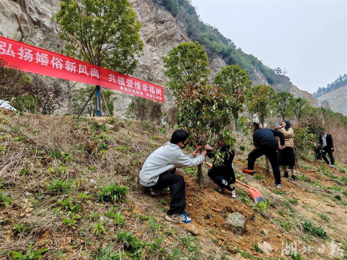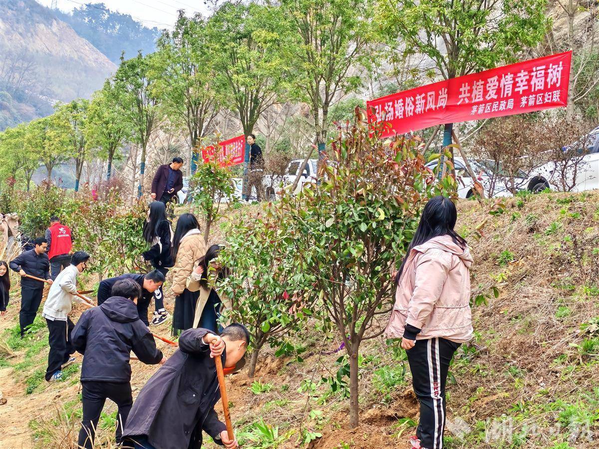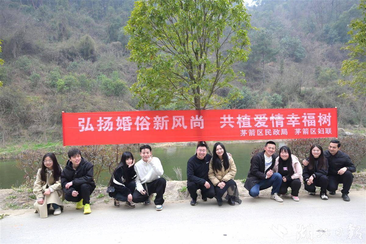 湖北日报讯(记者李光正、通讯员孙海潮)“爱在心口难开?这棵树会替我说一声‘我爱你’。张福升、叶婷于2024年3月15日植。”3月15日,十堰市茅箭区民政局联合区妇联、顾家村,组织新人开展“弘扬婚俗新风尚,共植爱情幸福树”活动,这是一对新人在许愿牌上写下的爱情誓言。