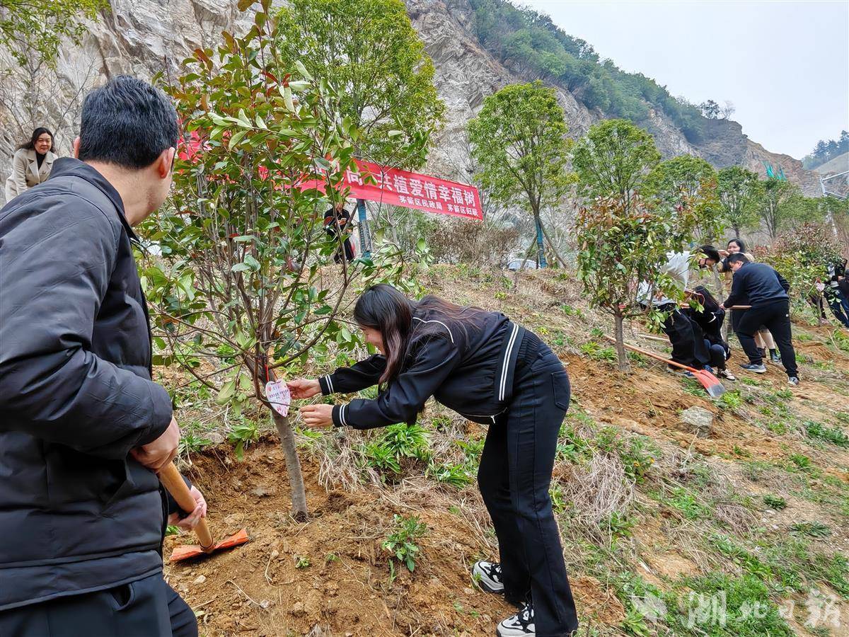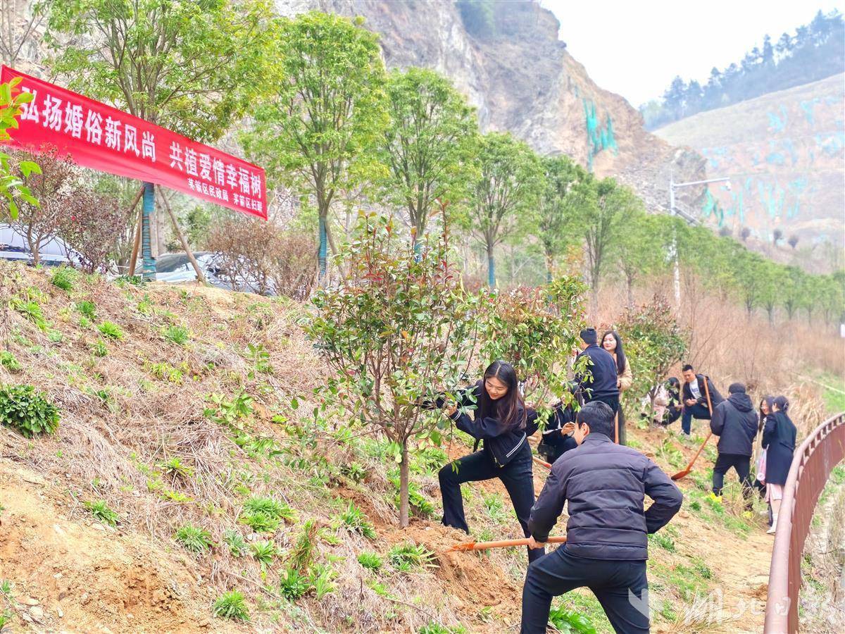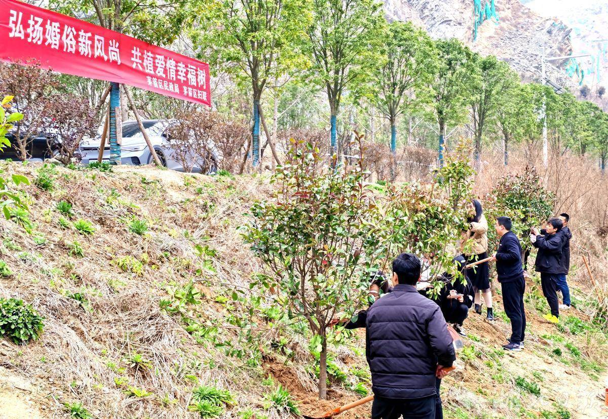 湖北日报讯(记者李光正、通讯员孙海潮)“爱在心口难开?这棵树会替我说一声‘我爱你’。张福升、叶婷于2024年3月15日植。”3月15日,十堰市茅箭区民政局联合区妇联、顾家村,组织新人开展“弘扬婚俗新风尚,共植爱情幸福树”活动,这是一对新人在许愿牌上写下的爱情誓言。