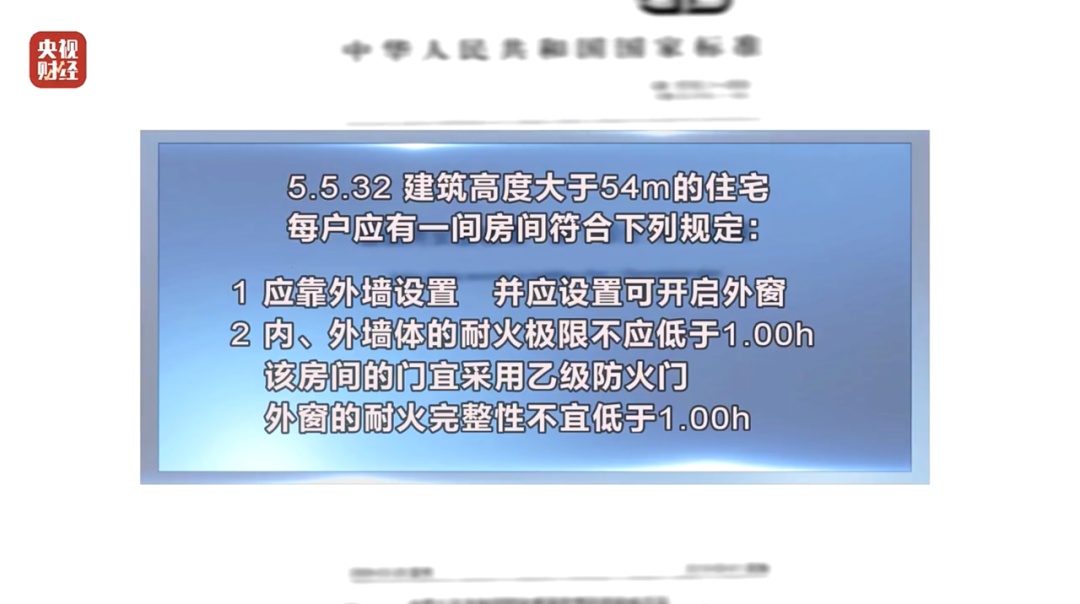 按照国家强制性标准《建筑设计防火规范》的要求,高度大于54米的建筑(通常是18层以上),每户应有一间房间的外窗采用耐火完整性不低于1小时的防火窗。这是高楼外层发生火灾时、建筑内人员赖以生存的必备硬件保障。