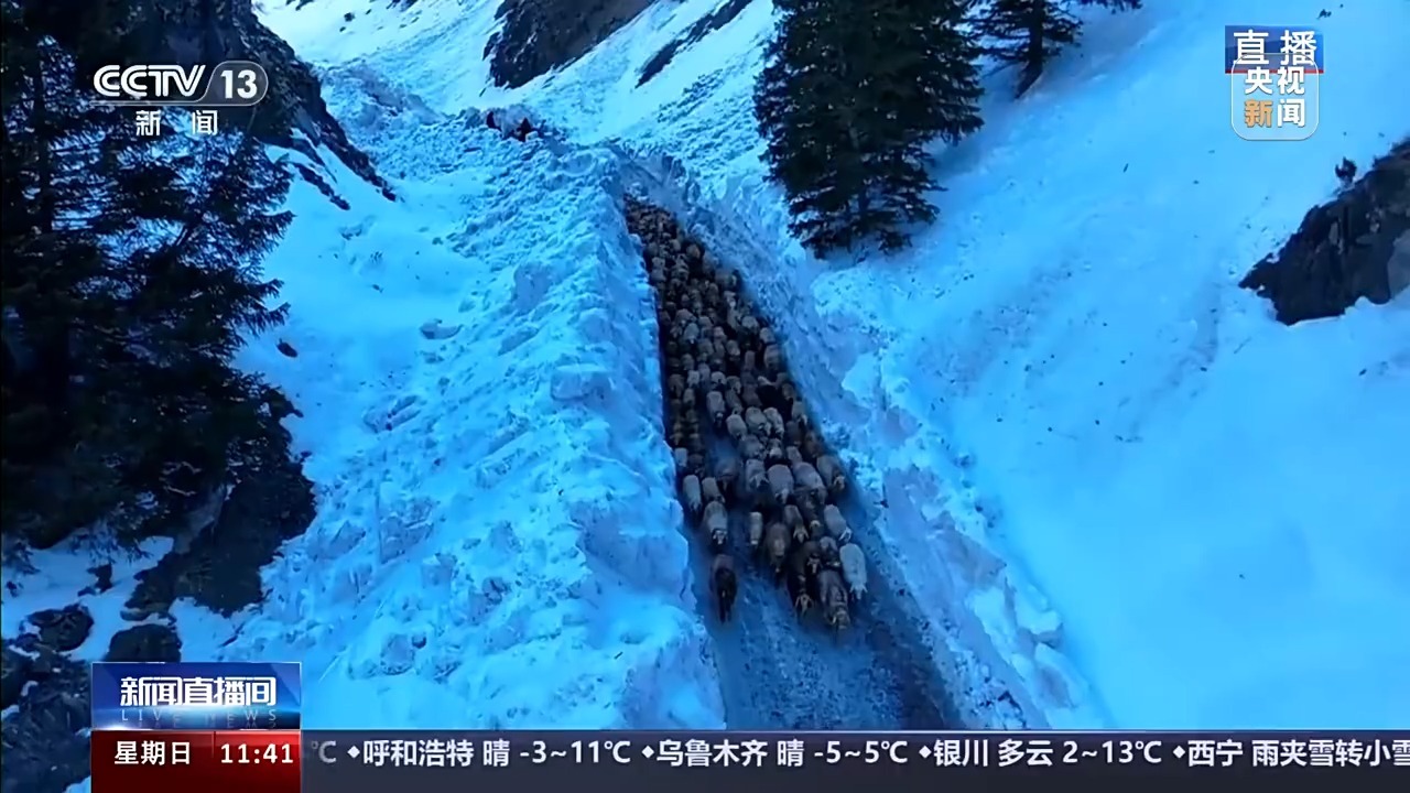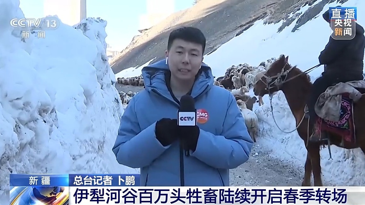 总台记者 卜鹏:现在正是新疆伊犁河谷牲畜春季转场的季节。新疆伊犁河谷的果子沟牧道是专门为牲畜转场而修的“专用通道”。它是连接伊犁州、博州两地多个县市以及不同草场的重要通道,也是很多牧民赶着羊群转场的必经之路。因为前几天的雨雪天气,有些路段比较湿滑,牧民赶着羊群行进的速度也比较缓慢。整个转场差不多需要一周左右的时间。