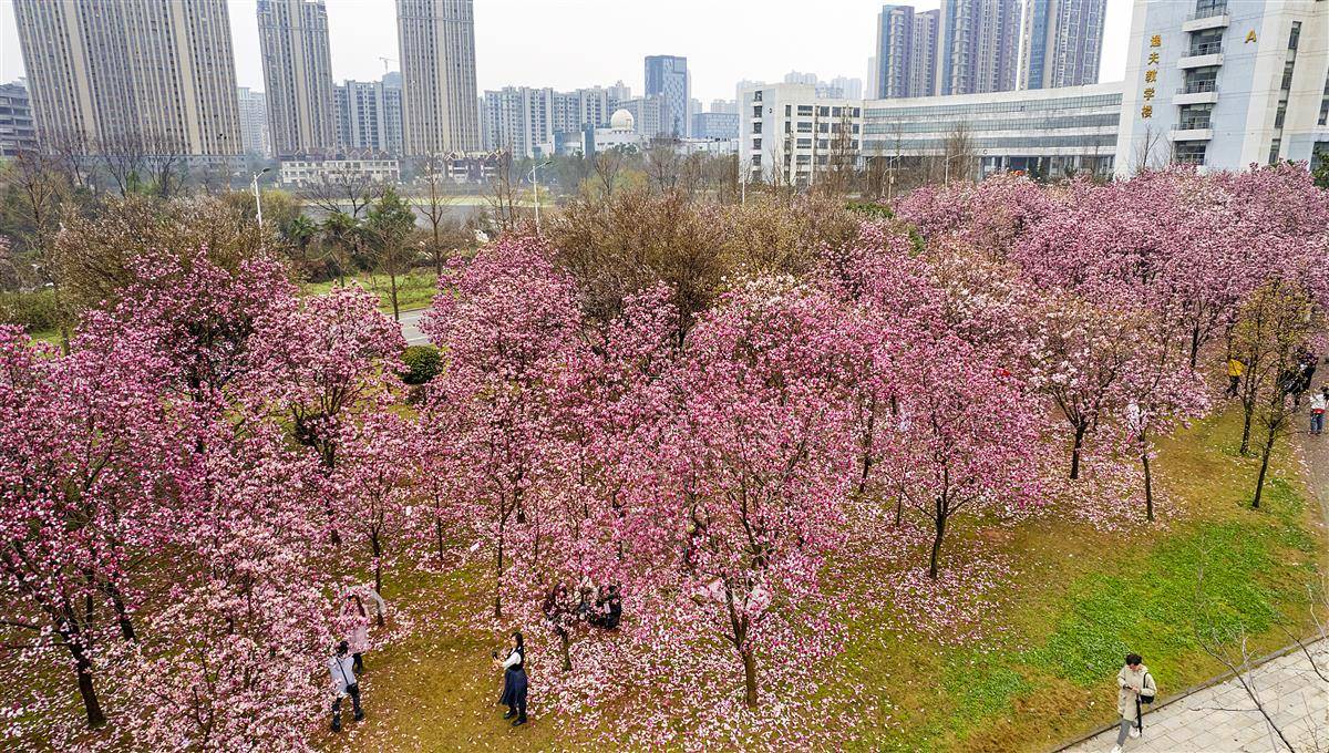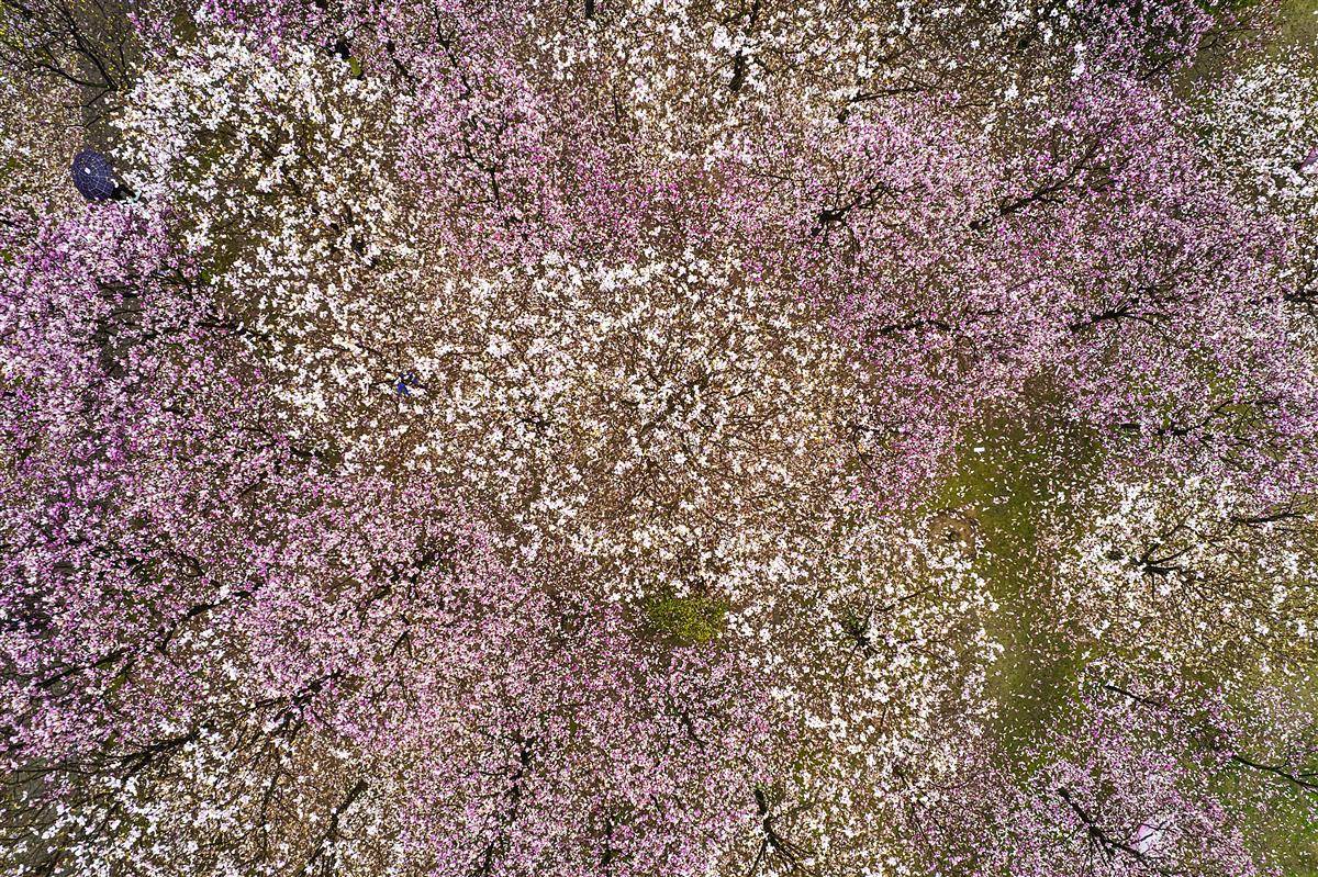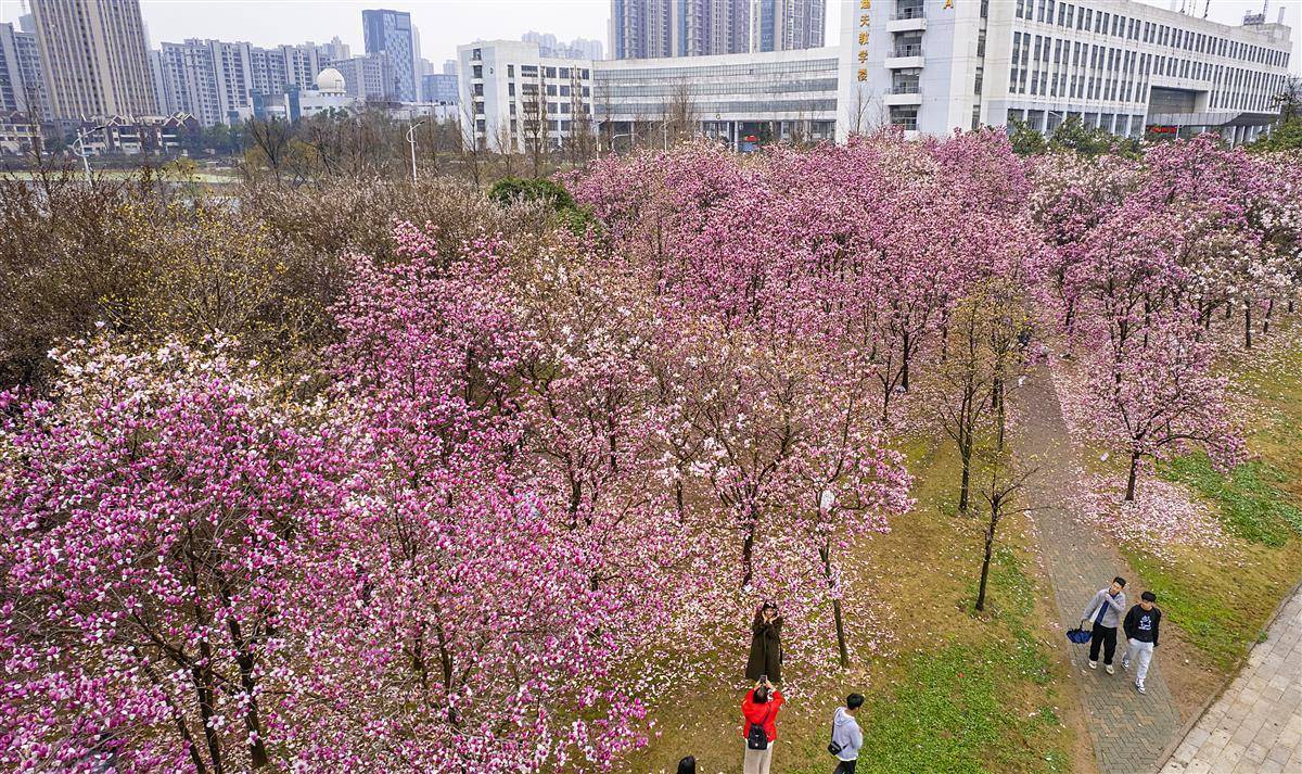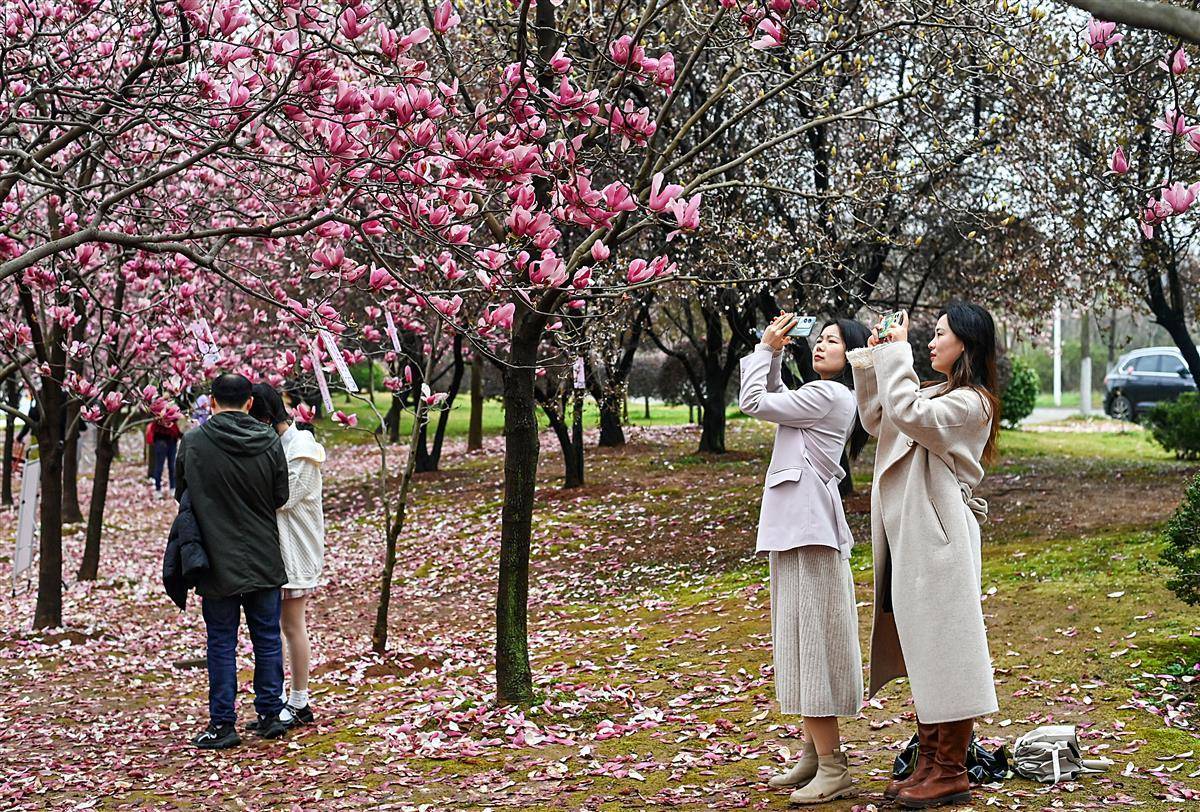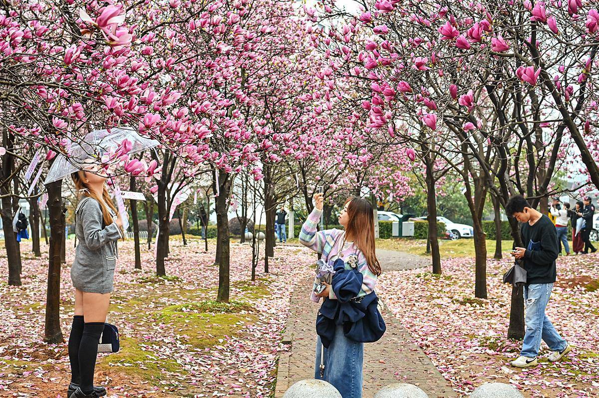 3月17日,武汉尽管下着小雨,但是依然难以阻挡民众赏玉兰花的热情,华中科技大学东九楼前的玉兰花林里,一朵朵或白或紫的玉兰花缀满枝头,清新脱俗,如诗如画,目前正是赏花时。