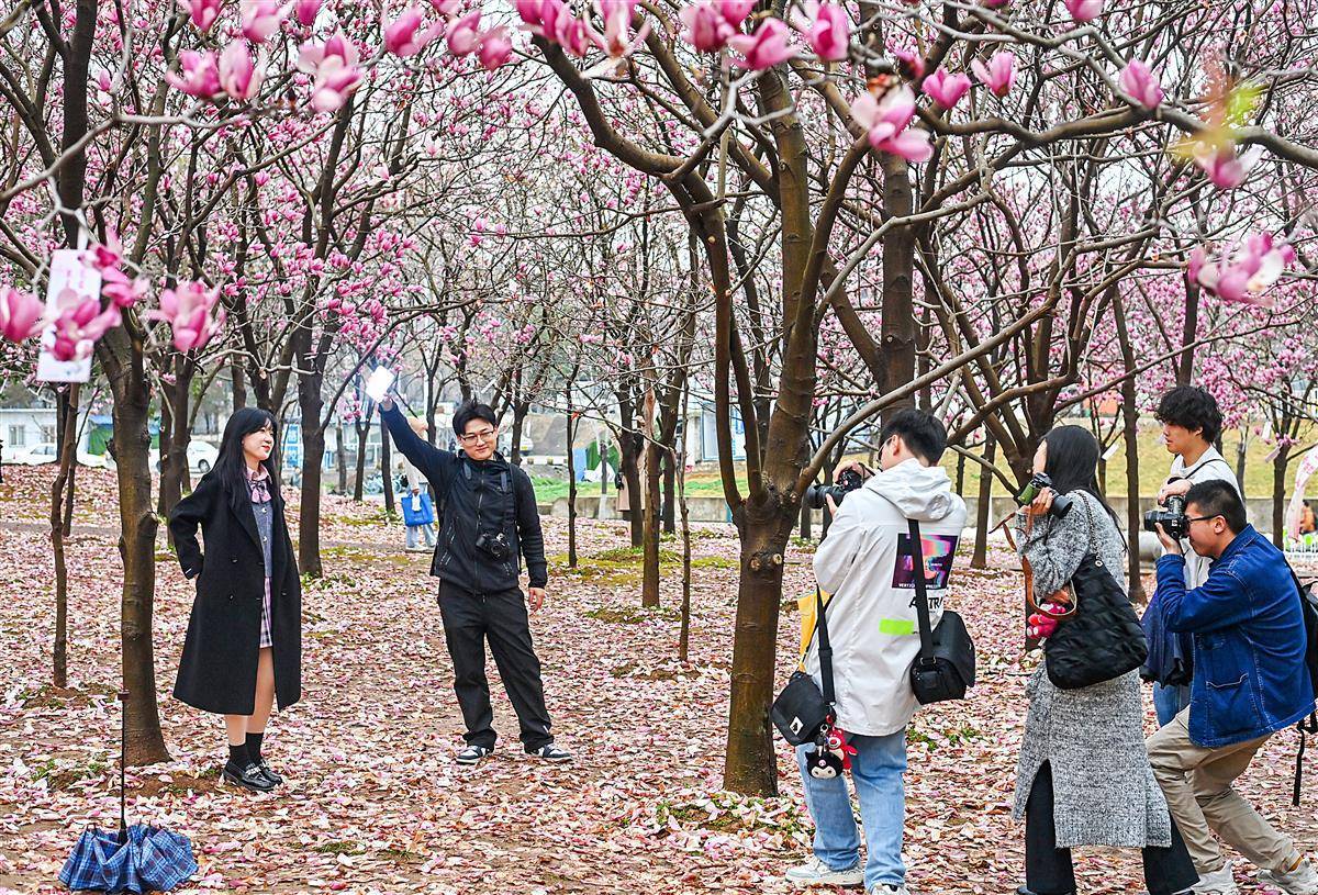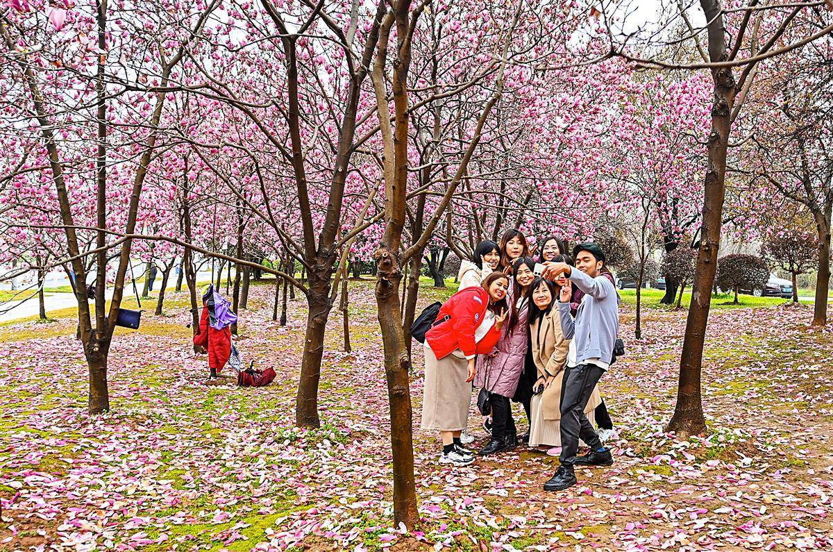 这片玉兰花林已经种植多年,花期到来给学校增加了春天的气息,也成为市民踏青游玩新的景点。