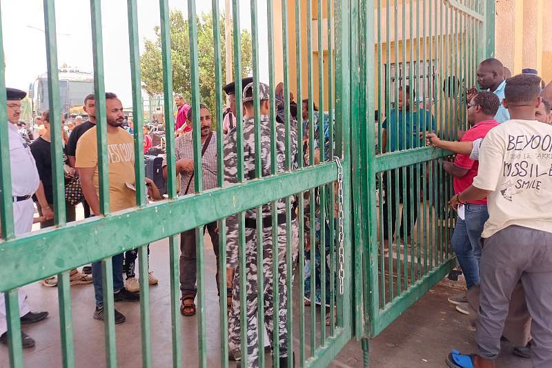 △当地时间2023年4月27日,苏丹难民等待通过一个陆路口岸进入埃及。