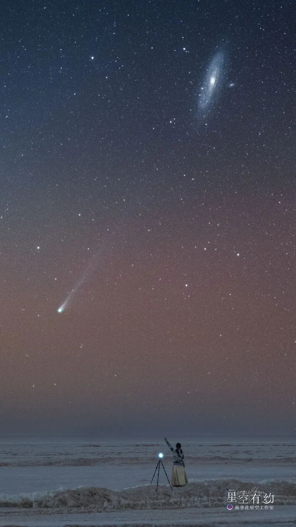 星空摄影师陈格爽3月10日在青海湖拍摄的12P彗星。(星联CSVA供图)