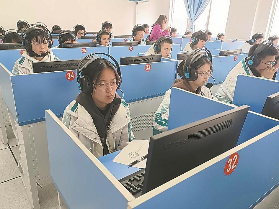 3月13日,襄阳四中义教部九年级学生参加英语听说模拟考试 全媒体记者张丽 通讯员段云丽 摄