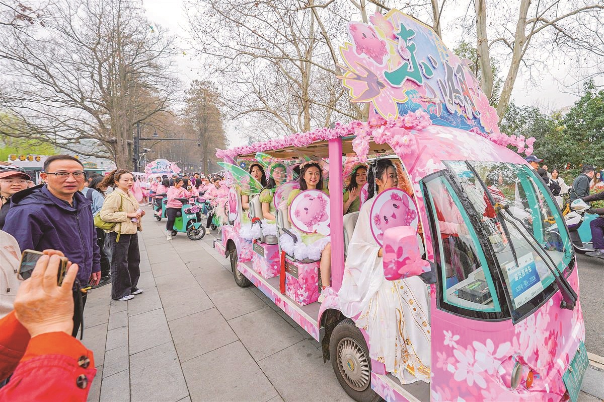 东湖绿道相关负责人介绍,本次花仙子巡游活动是2024东湖“花花游园会”系列活动之一,让游客沉浸式体验樱花文化,充分感受樱花节的热烈气氛。目前“花花游园会”樱花主题市集已在湖光序曲广场开放,现场设置了樱花创意打卡点、樱花文创贩卖车、樱花手作、樱花美食、互动游戏等特色摊位,市集将持续至3月31日。东湖绿道沿线驿站也展示了各式各样的樱花文创、樱花周边,很多都充满武汉元素。