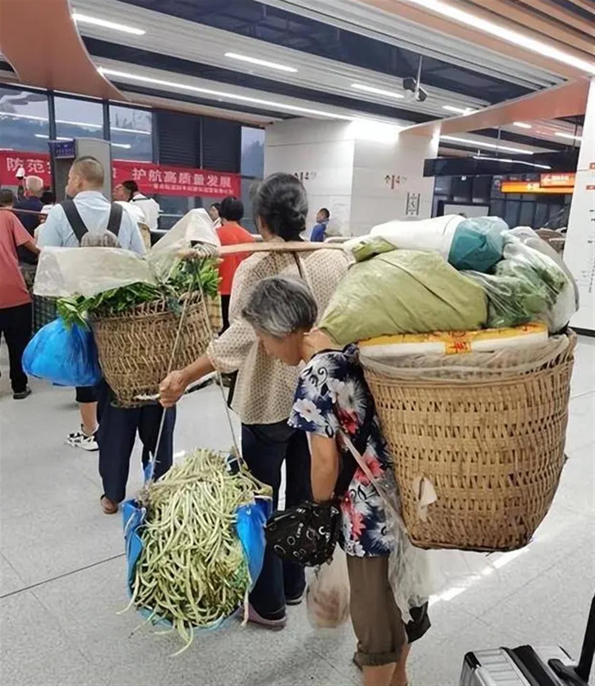 在此之前,重庆轨道交通容纳菜筐,舆论就曾点赞过,这代表着绝大多数人的观点。2023年9月,据媒体报道,重庆地铁4号线石船站开通后,每天都有一群老人背着背篓去市区卖菜,久而久之,大家亲切地把这一段路线称为“背篓专线”。