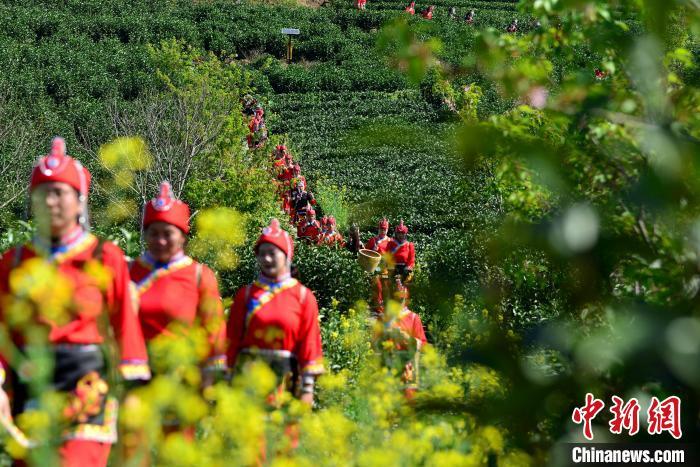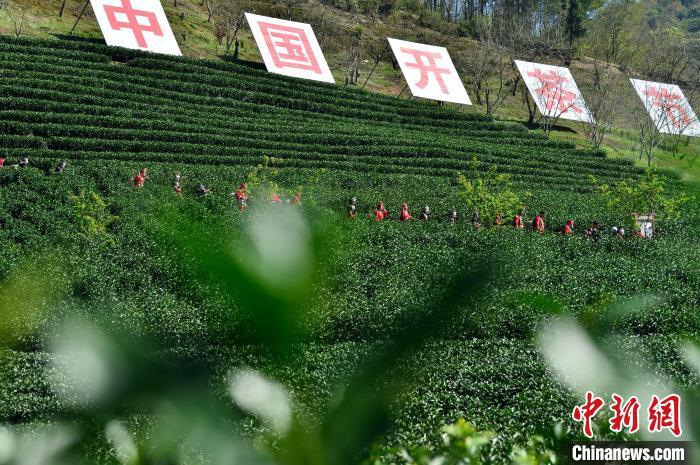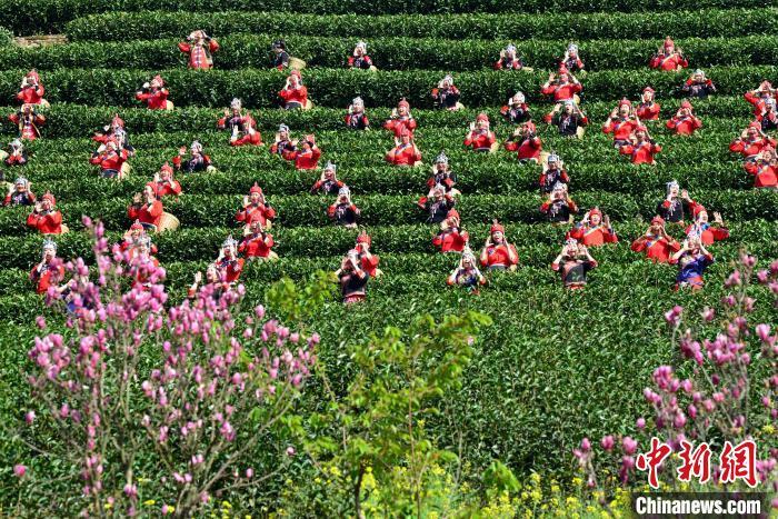图为3月20日,茶农在开茶节上喊山开采。 中新网记者 张斌 摄
