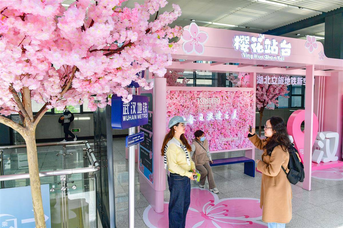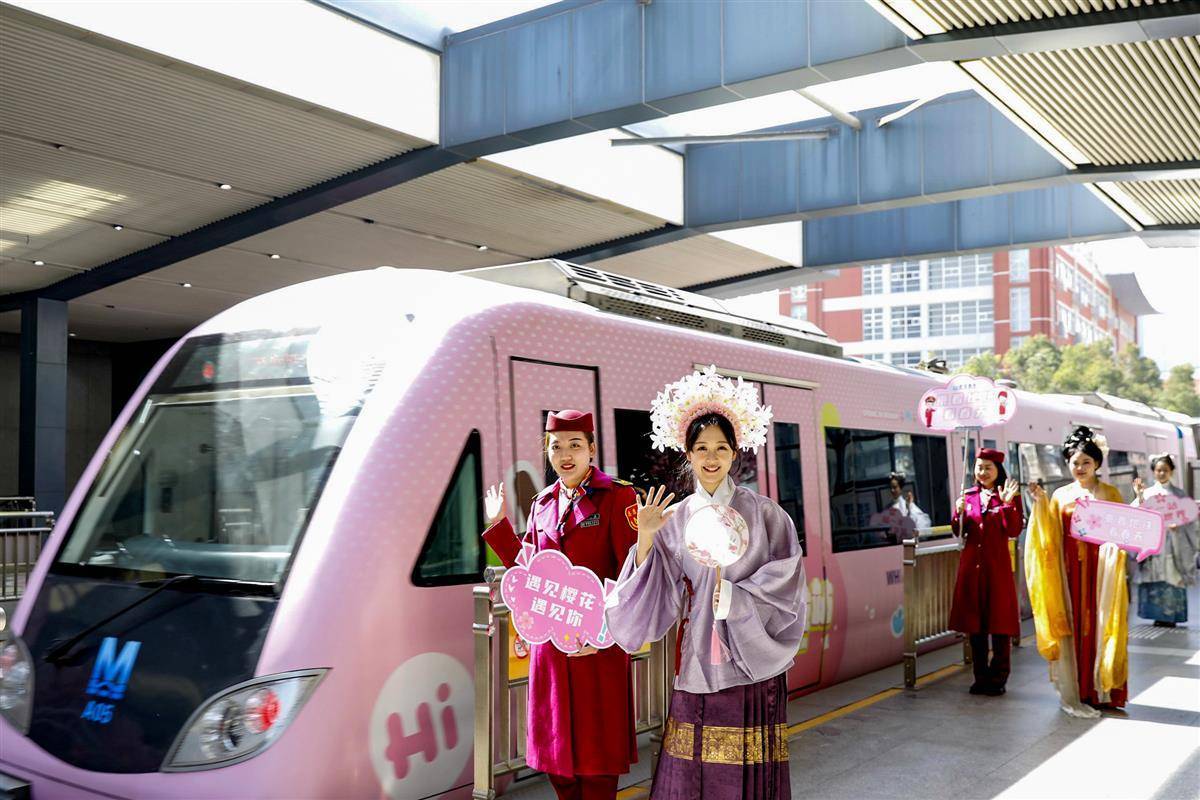 2024年3月20日,武汉地铁1号线樱花专列——“鱼快的春天有一毛”主题列车上线运营。近年来,武汉地铁把赏花踏青与城市文化、公共交通融合,发布赏樱主题线路、打造樱花主题专列、推出赏花出行攻略、解锁赏樱集章打卡等活动,在为春日城市增添一抹亮色的同时,有效推动城市绿色公共交通深度融合“旅游+”发展。