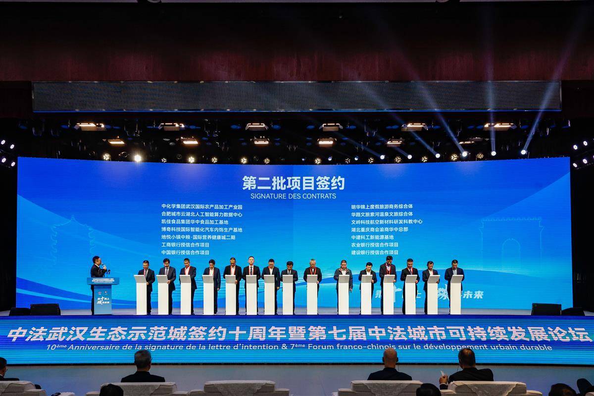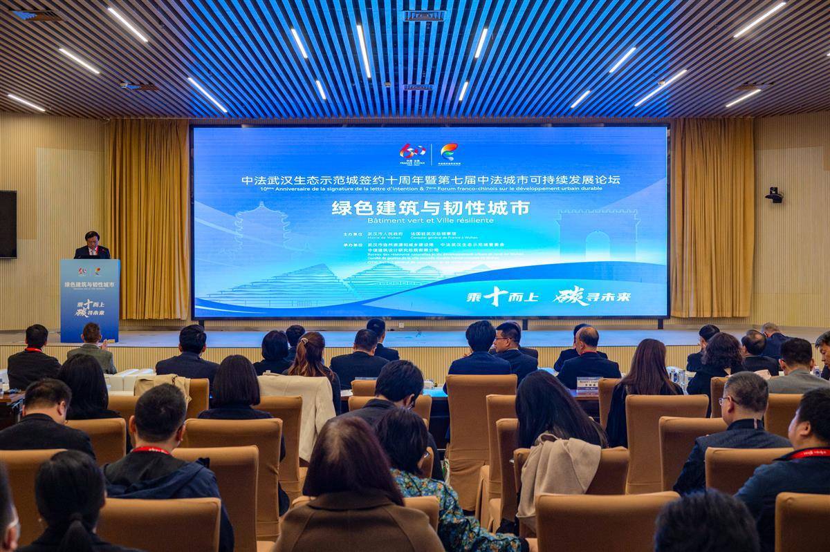 2024年3月20日,中法武汉生态示范城项目签约十周年暨第七届中法城市可持续发展论坛开幕,论坛以“乘‘十’而·‘碳’寻未来”为主题,共同探讨绿色建筑产业、近零碳城市建设、生态环境治理、湿地保护和生物多样性等领域的最新技术动态、经典案例、市场趋势及合作机会,助推中法生态城提高开放型经济发展水平,助力武汉加快打造新时代内陆开放新高地。