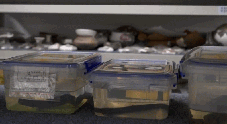 △ 泡在溶液中保护的漆器构件