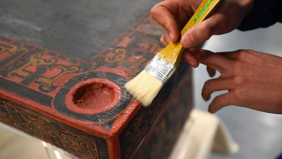 △ 文物医生在修复漆木器构件