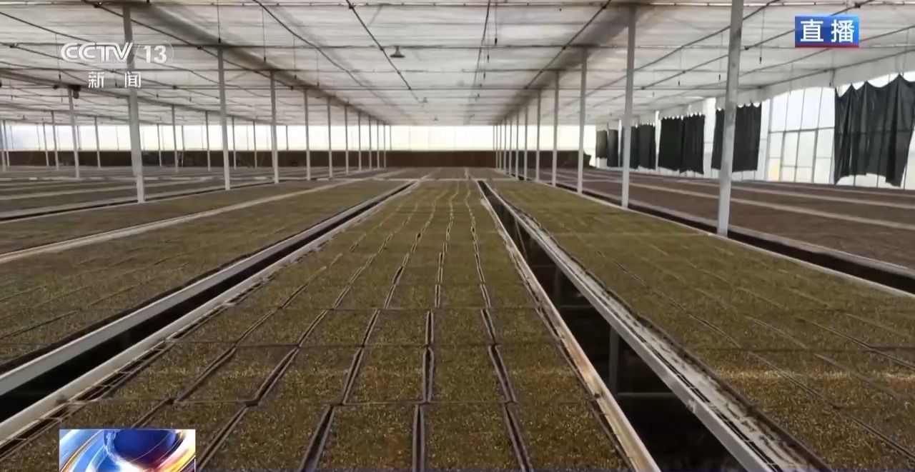 在流水线下线之后,育秧盘就会被送到我身后的这座育秧工厂了,在这里,温度、湿度、二氧化碳的浓度都可以实现智能监测、远程调控,让早稻秧苗能够在春季生长期不惧气温波动,快快长高。当地农业技术人员告诉记者,相较于传统的大田育秧,这样育秧能够缩短10天左右的时间,我们现在看到育秧盘有的已经微微泛绿了,再过15天左右,壮实翠绿的秧苗就将在这片农田种下,为丰收打好坚实的基础。