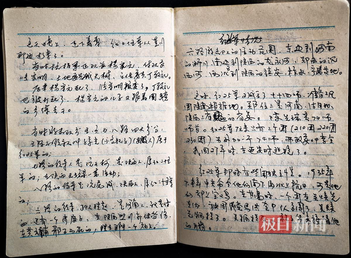 在整理红二十五军资料时,他偶然看到原郧西县党史办工作人员皮国安的工作笔记本。