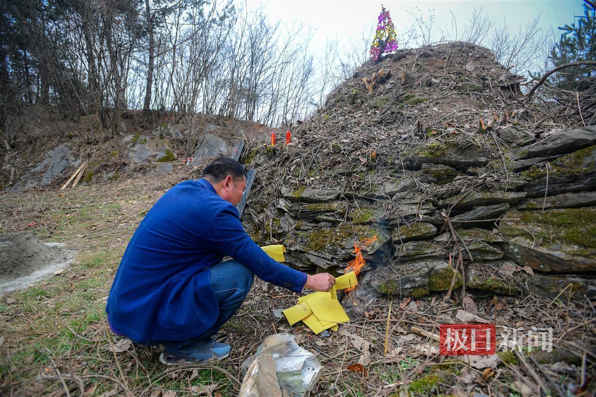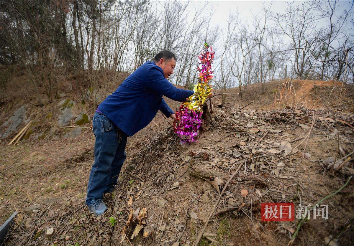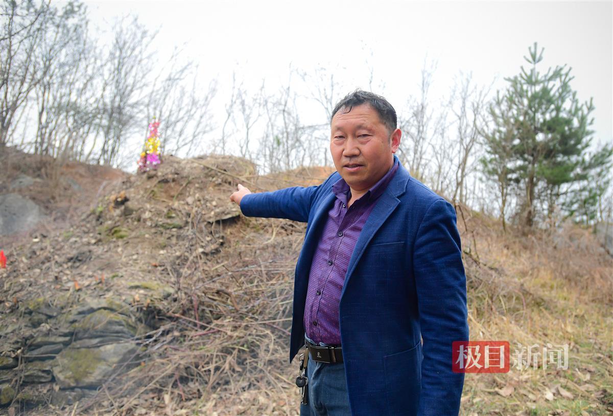 2024年3月15日,极目新闻记者在现场看到,当年覆盖在墓上的石头已经长满了青苔,周围堆着带刺的树枝,那是村民为了防止牛踩坏墓地临时设置的“栅栏”。