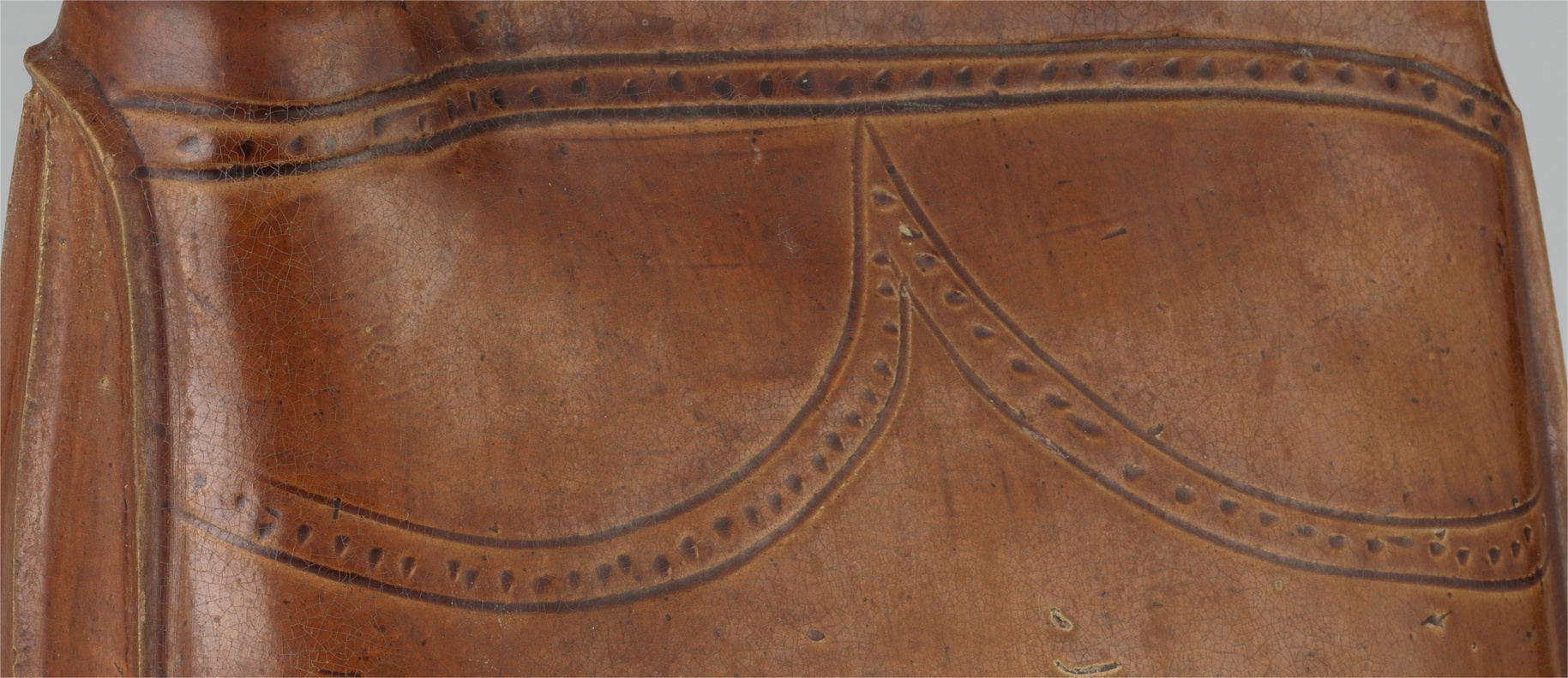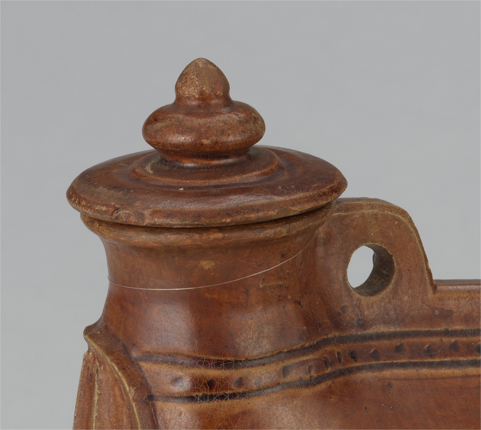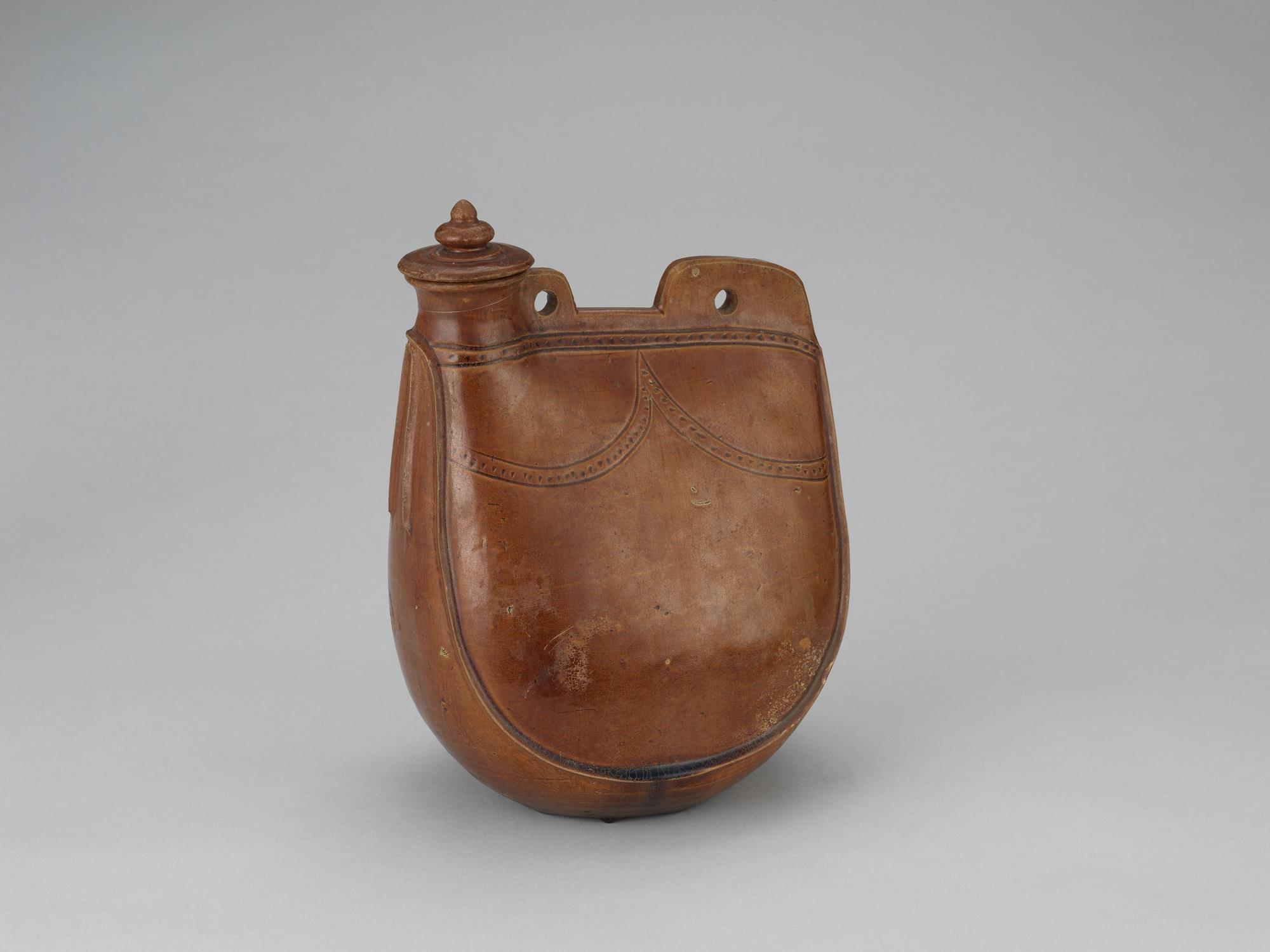 马镫壶上装饰的仿皮革缝合线针脚