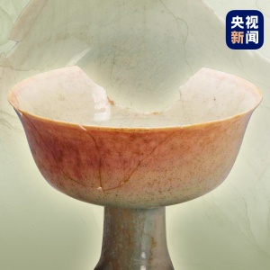 △元代影青釉里红高足瓷杯 杭州博物馆藏 文博日历丨无法再现的美!这个杯子自带“腮红”
