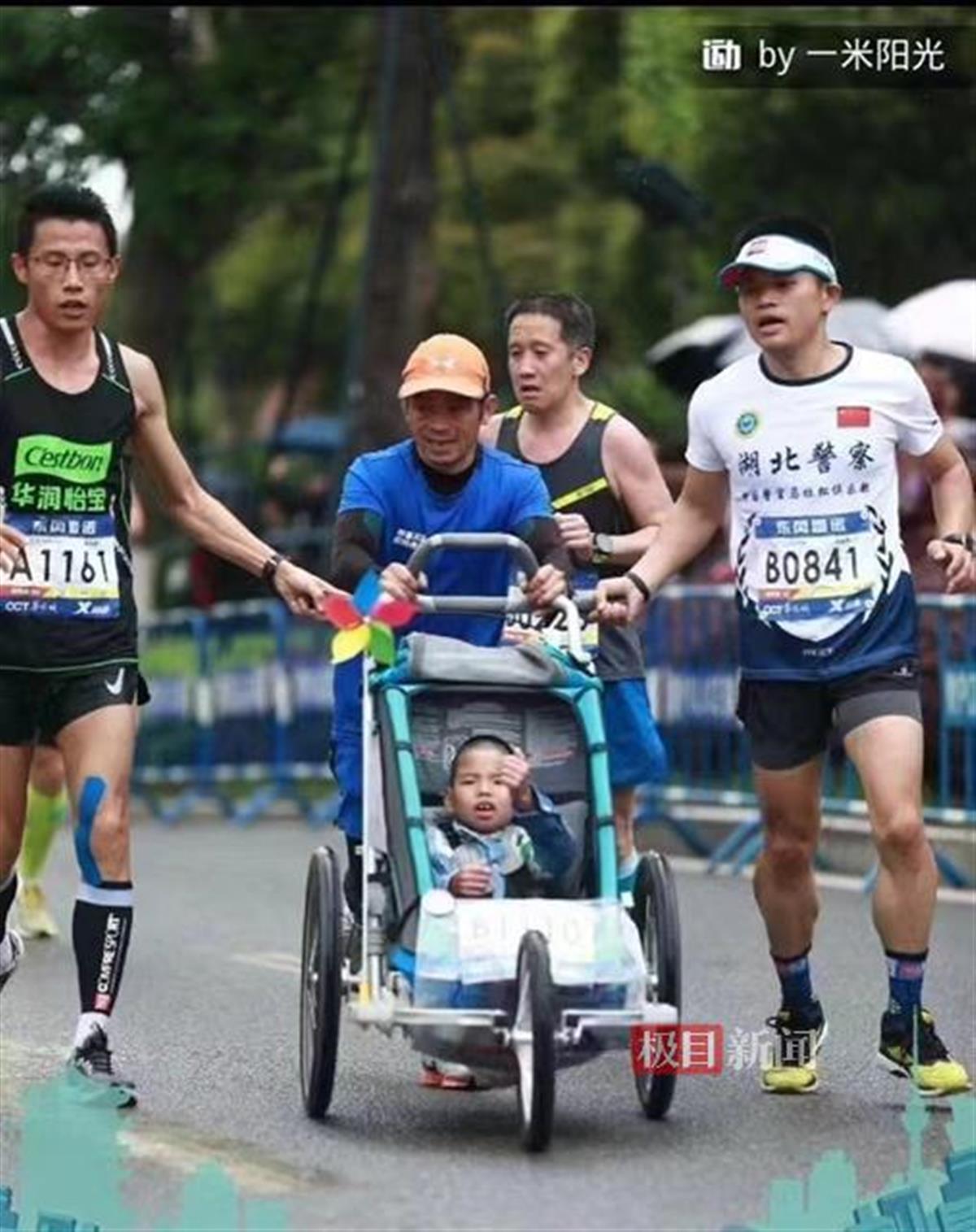 就在此时,他看到一名男子推着童车在赛道上奔跑,顿时吃了一惊,民警的本能让他上前相助。那名男子告诉王金涛,自己的梦想是带着患病的孩子小满跑全马。