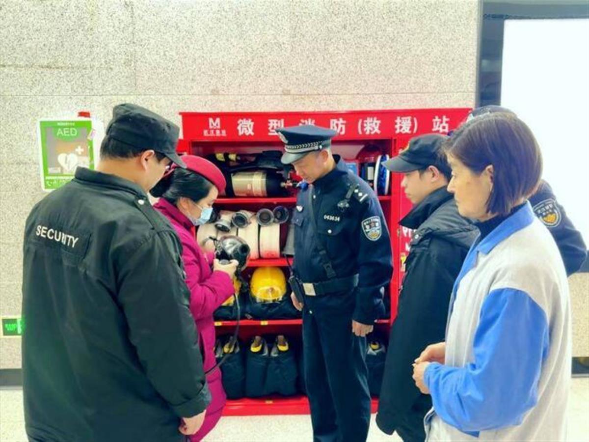 民警和“平安地铁联盟”成员一起进行消防检查