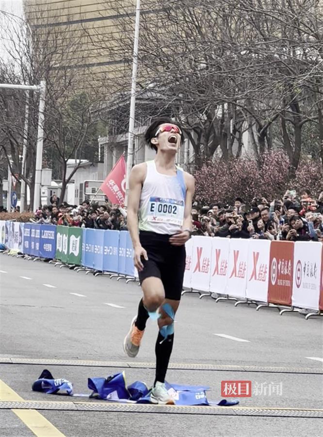 3月24日,2024武汉马拉松,在男子半程马拉松项目中,27岁的张德成以1小时07分07秒的成绩获得冠军。张德成来自山东,在欢呼声中以第一名的身份冲过终点线时,他激动得仰起头来,大叫一声。
