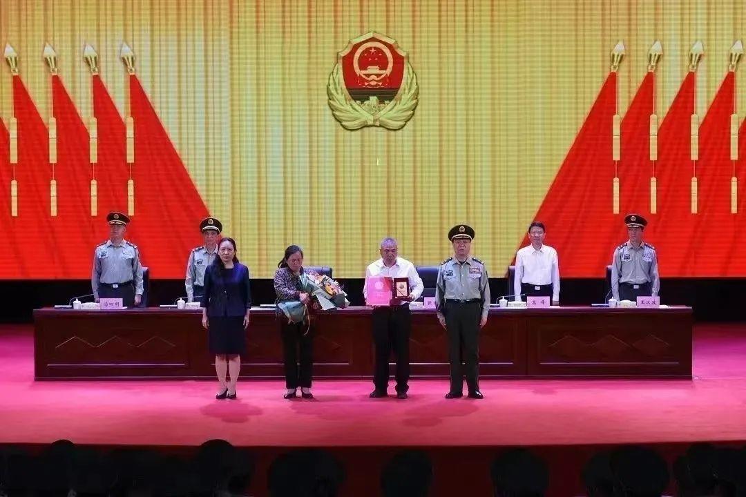 ▲ 向烈士汪晓龙父母献花,颁发荣誉奖章