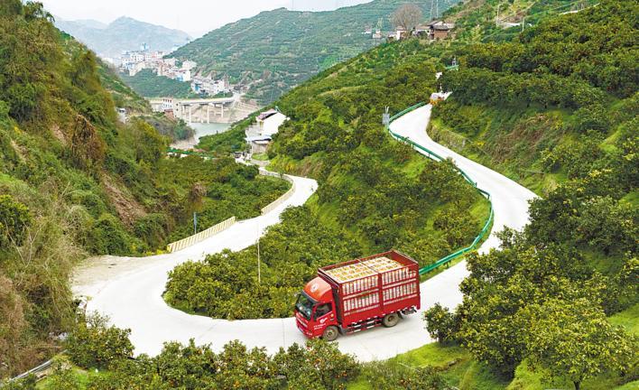 全长3公里的龙玄线投资300多万元,已成为当地村民运橙通道。谭光兴家种了13亩脐橙,一年可产3.5万公斤鲜果,像他这样因路增收的村民有200多户。