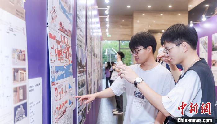 穗港澳高校“活力杯”设计活动总结会25日在广州市城市规划展览中心举行。图为学生观看参赛资料。广州市规划局 供图