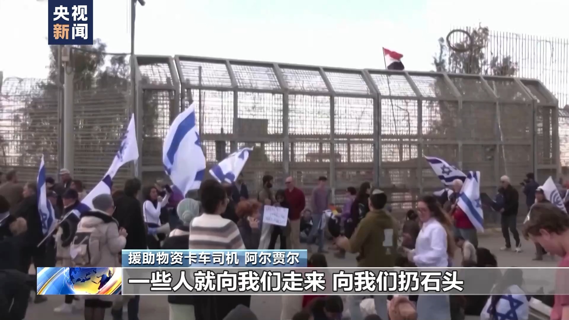 运送援助物资卡车司机 阿尔贾尔:我们首先面对的危险和困难,是人为造成的。我们刚一进入过境点,一些人就向我们走来,向我们扔石头。其次,以军无人机总从我们头顶飞过,前段时间我行驶在海边的路上,一架无人机撞击了我们。你知道吗?人们认为我们这样来来回回是在自杀,但我们不是普通的司机。我们运送物资是为了帮助人们,给他们带来食物。