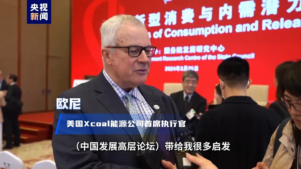美国Xcoal能源公司首席执行官 欧尼:中国发展高层论坛带给我很多启发,我看到了政府和私营企业良好的合作,尽管在投资方面还多少面临一些挑战,但是我想,大家还是愿意来中国做生意。我想告诉我的同事们,继续来中国投资吧。