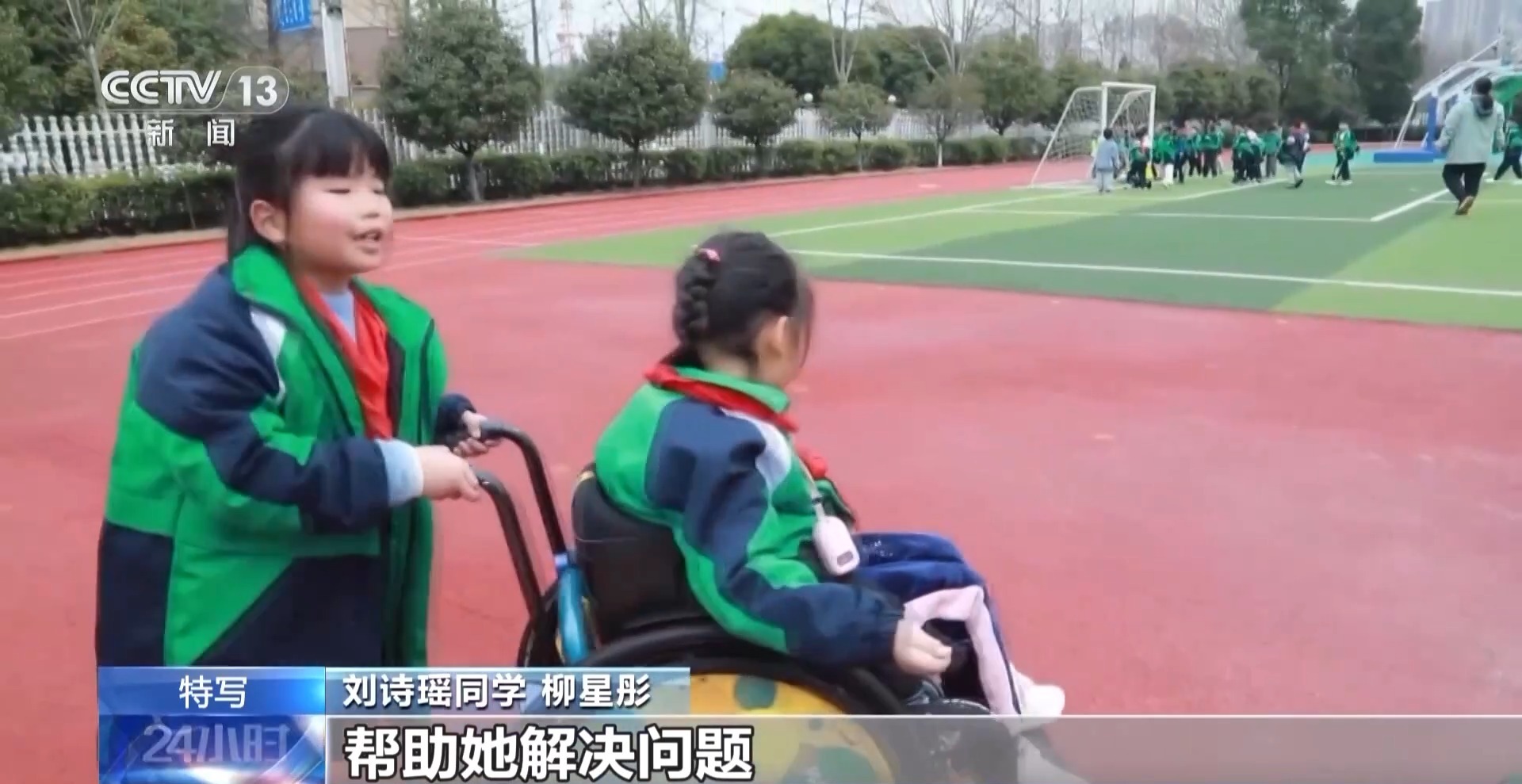 刘诗瑶妈妈 胡艳平:课前的准备,像我孩子的话因为她不能弯腰,从书包里面拿书,还有文具盒的拉链她也是拉不开的,所以同学们就充当这些角色,帮她忙。