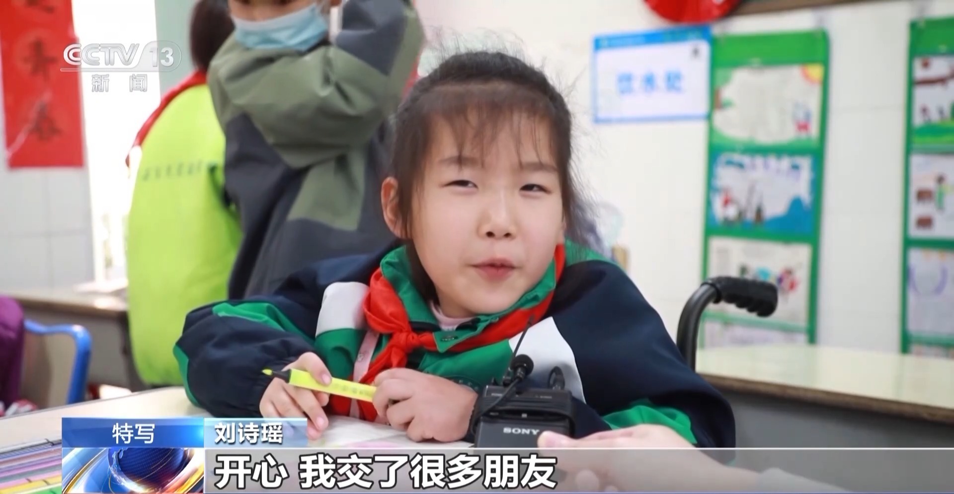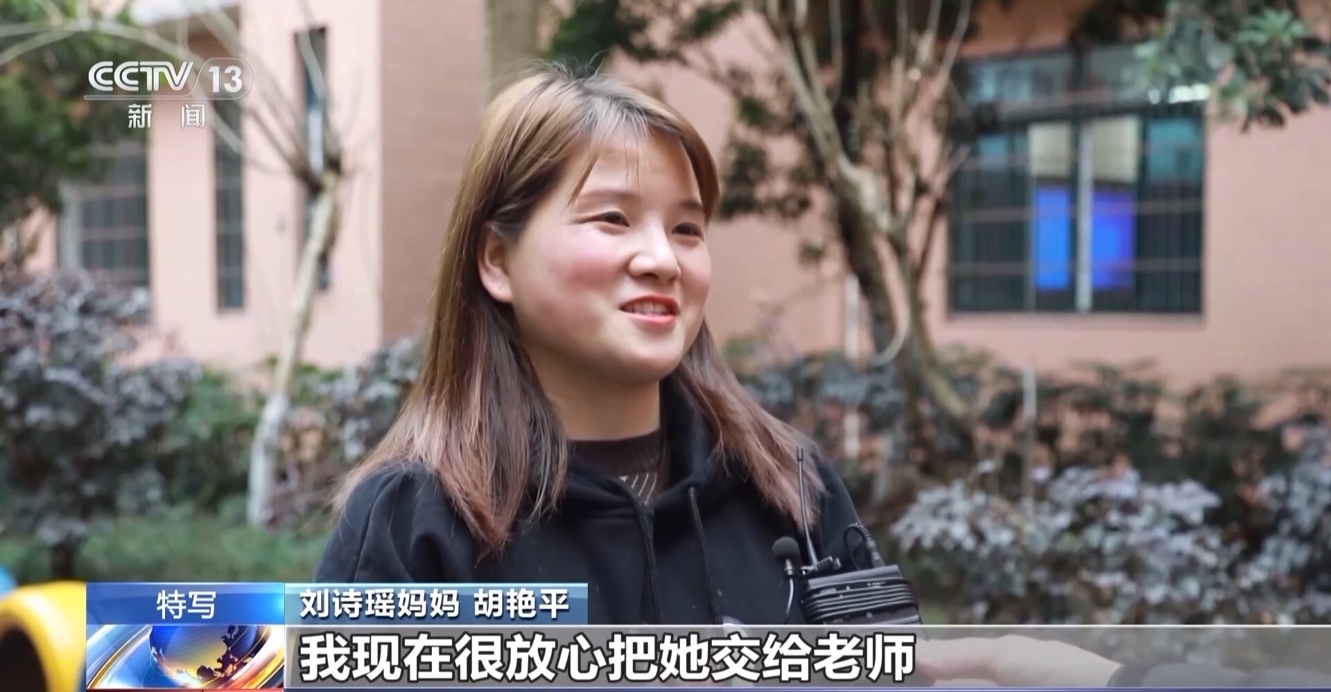 刘诗瑶妈妈 胡艳平:瑶瑶挺适应的,现在很好,我现在很放心把她交给老师,我可以一整天或者一上午都不用来学校。她和同学们相处得也比较愉快,就像正常的小朋友一样。真的很感谢他们,也很幸运遇见他们,带给我女儿很多温暖,让她每天都很快乐很高兴。