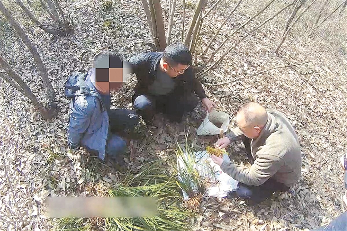 3月6日,宜城市公安局森林警察大队接到上级线索指令。一男子疑似在宜城市流水镇山上,利用短视频平台直播采挖野生兰草并出售。民警立即对平台账户进行综合研判,发现襄阳籍男子赵某有重大作案嫌疑。