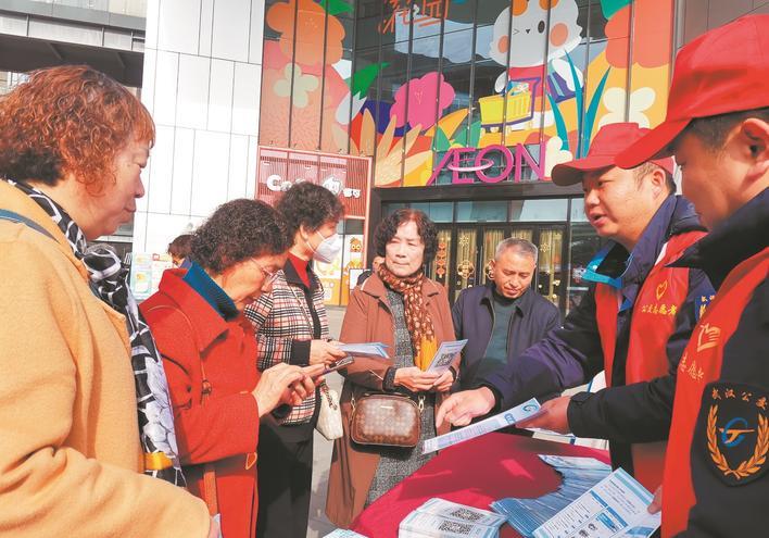 公交工作人员向市民乘客介绍“武汉公交”APP。