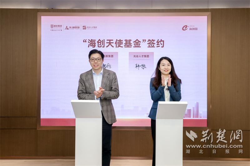 荆楚网(湖北日报网)讯 (通讯员 任谦 魏秦丽)3月26日上午,东湖高新海创园揭牌仪式在光谷举办。在东湖高新区党工委委员、管委会副主任钱德平,湖北联投集团党委委员、副总经理、东湖高新集团党委书记雷宗江,武汉市委统战部副部长何文娟,东湖高新区科创局局长钟复平的共同见证下,湖北联投东湖高新集团董事长杨涛、光谷人才集团总经理孔璇代表双方为园区揭牌。