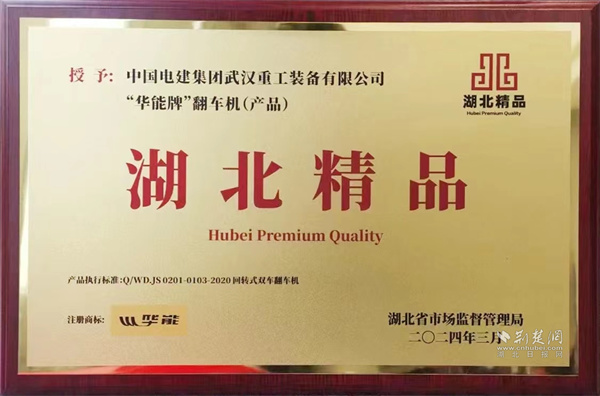 荆楚网(湖北日报网)讯(通讯员 宋云)近日,湖北省市场监督管理局公示了2023年首届“湖北精品”认定名单,武汉重工公司“华能牌”翻车机位列其中。