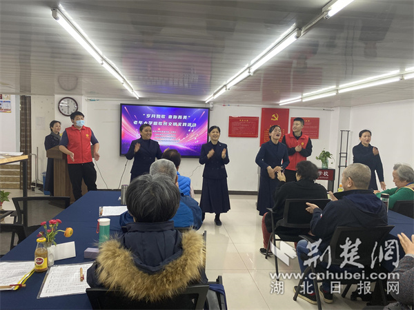 据了解,为进一步丰富社区老年居民群众的精神文化生活,展示老年人“老有所学、老有所为、老有所乐”的精神风貌,当日上午,江岸区委宣传部(文明办)组织江岸区新时代文明实践中心、四唯街道新时代文明实践所、四唯街道六合社区新时代文明实践站开展“岁月如歌 音你而美”老年大学唱歌班文明实践活动。