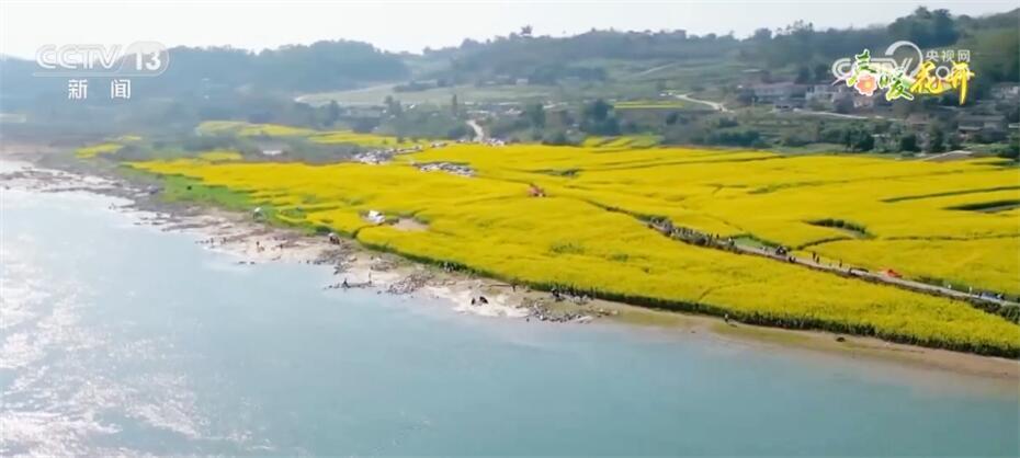 这里是长江入渝后的第一个成片油菜花海。由于河床泥沙适宜油菜生长,当地农民也有了种植油菜的传统。每年三月,大地就像铺上了一层金灿灿的地毯,成为游客亲近自然、休闲游玩、共享生态福利的好去处。
