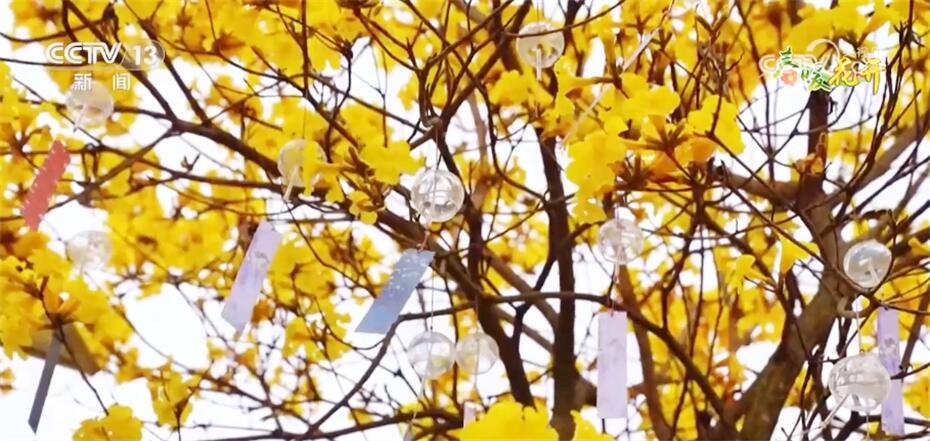 这几天,在广西梧州市万秀区的城东镇,满山绚烂黄灿,风铃花密密匝匝地绽放在梢头,在阳光的照耀下显得格外亮眼。
