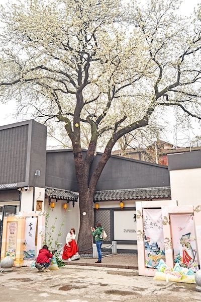 3月28日,位于武汉市硚口区华中建材市场的一棵百年杜梨树,繁花满枝,引来许多游客观赏拍照。树上铭牌显示:该树名杜梨,树龄150年。