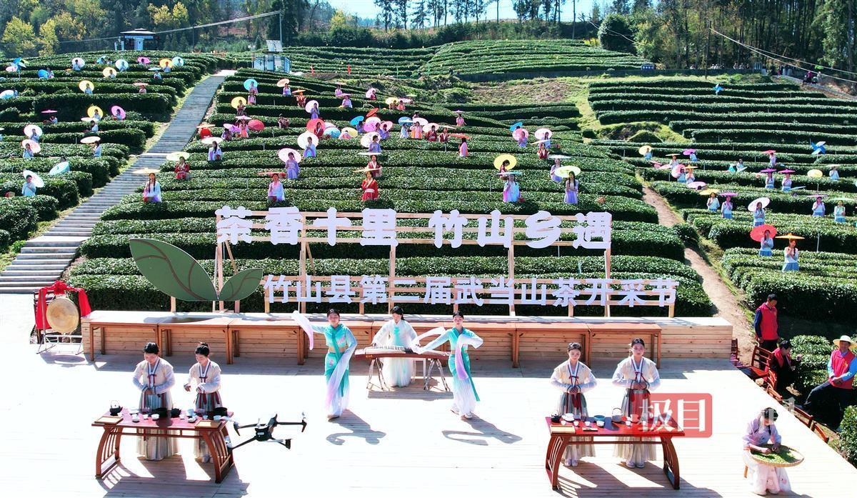 随着一声清脆的锣声,茶园里立即热闹起来,200余名身穿采茶服的姑娘和茶农们在碧绿的茶园中采茶欢歌,拉开了竹山县第二届“武当山茶”开采节的序幕。