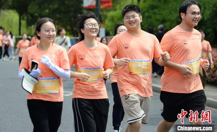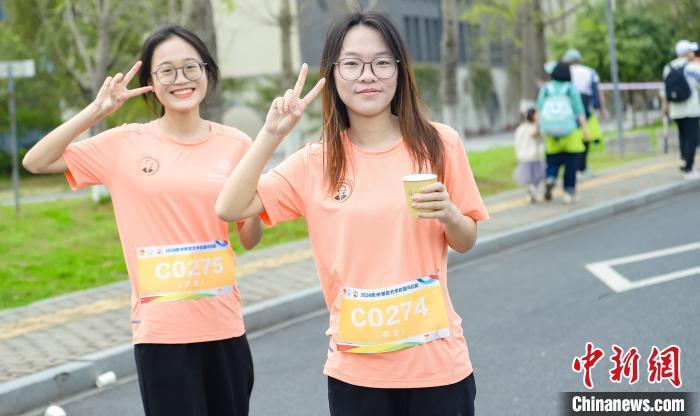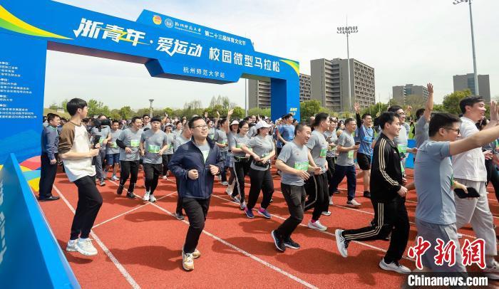 现场,“浙青年·爱运动”校园微型马拉松杭州师范大学首站起跑仪式火热开启,2000名杭州师范大学学生、校友“热辣”开跑。