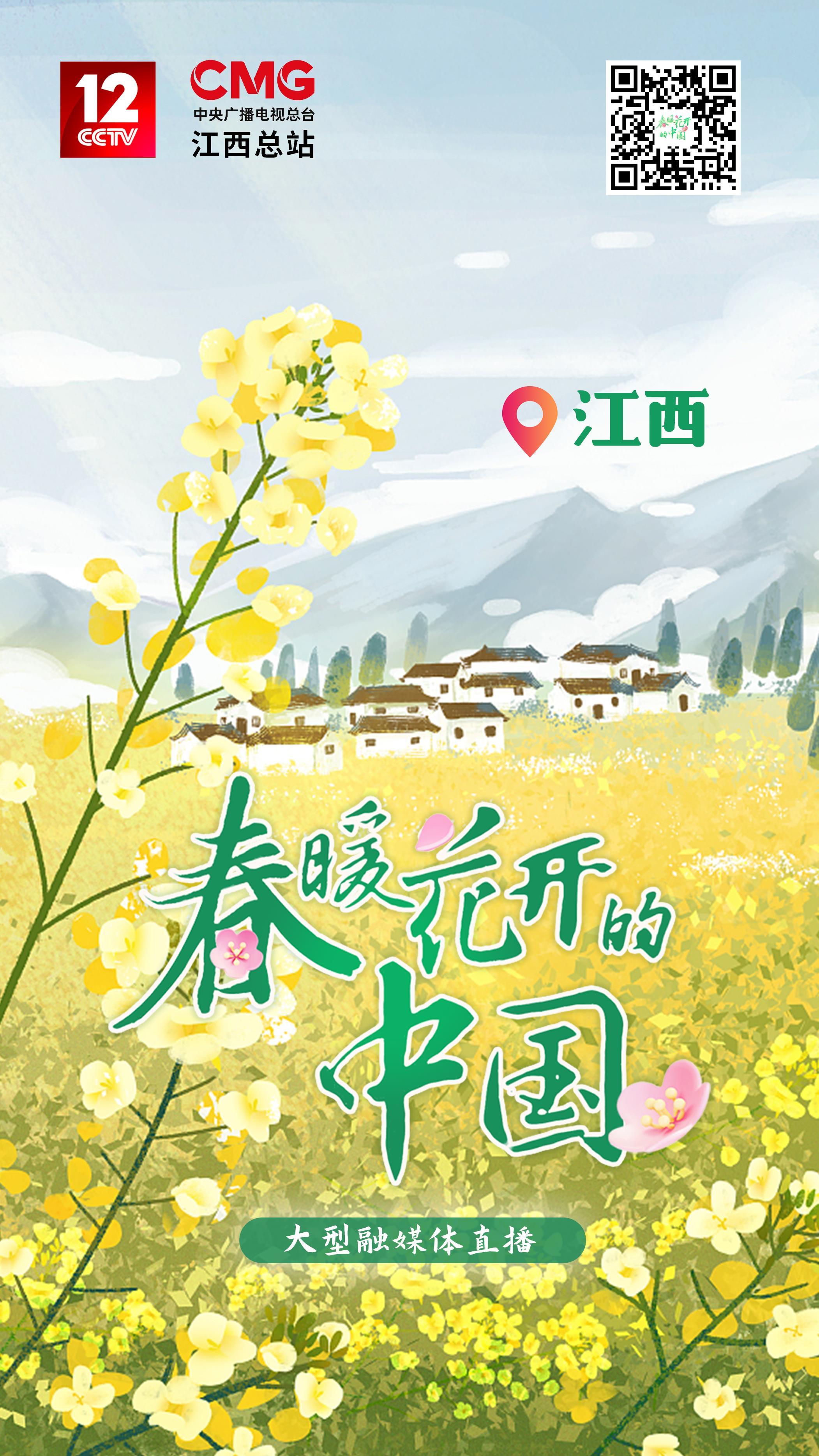江西的春天是一幅五彩斑斓、生机勃勃的画卷。今天,《春暖花开的中国·江西篇》带领观众前往婺源篁岭,看油菜花海与丘陵勾勒出绝美景象;到百里金黄的江岭,体验春味“非遗”;去乐平田园,用脚步丈量好春光。
